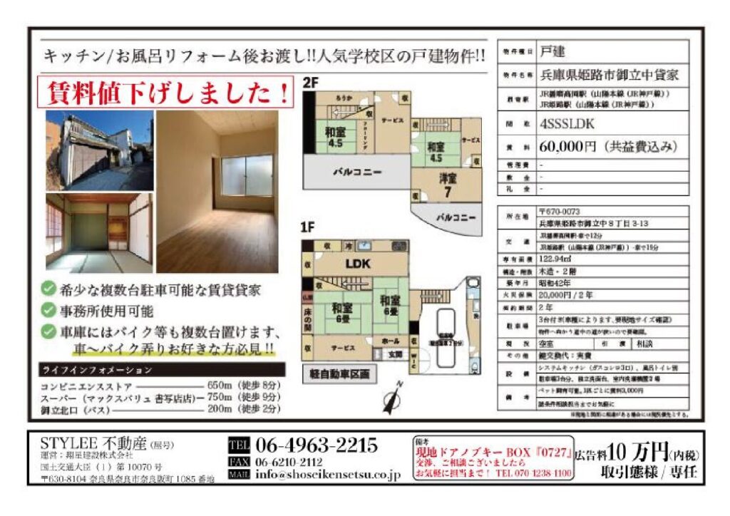 駐車場3台付き(車種によります、要現地サイズ確認)